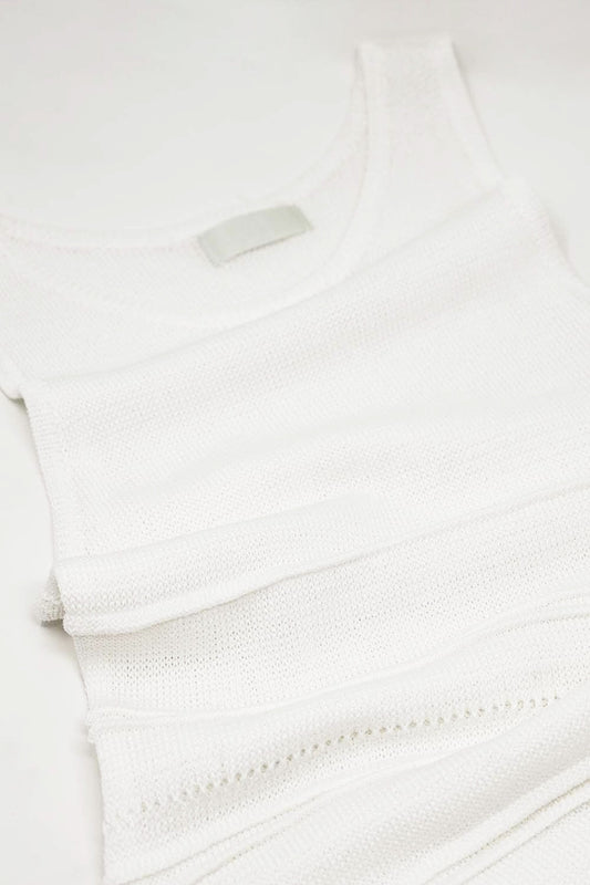 Maxi Vestido Blanco de Punto de Crochet sin Mangas