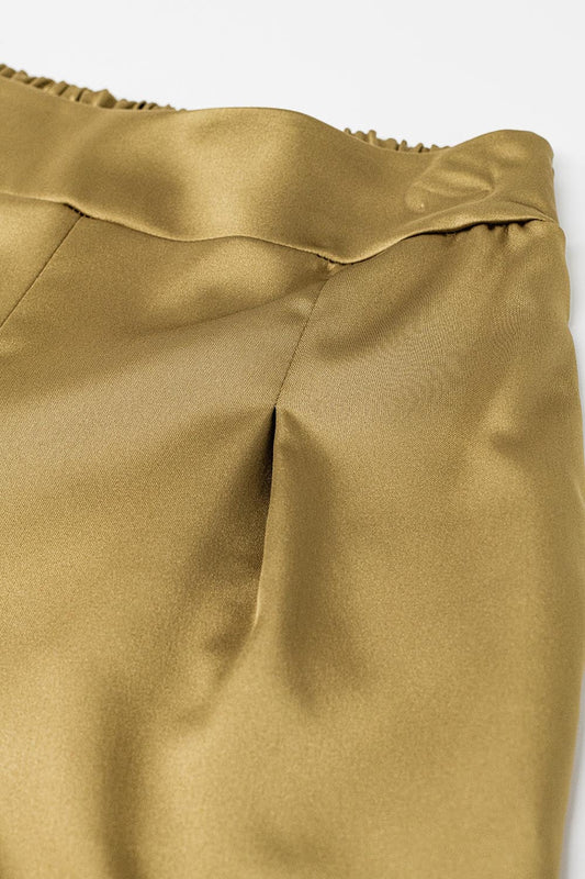 Pantalón ancho de satén dorado de cintura alta