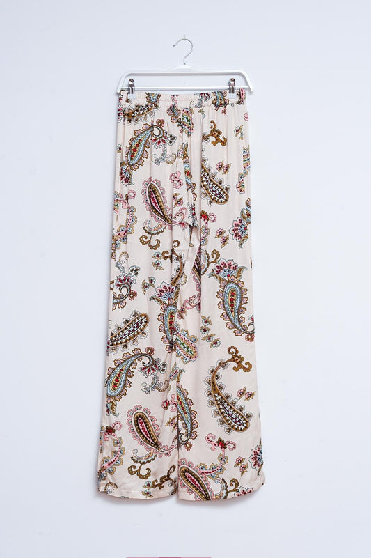 Pantalones de pernera ancha y estampado de cachemir en beige